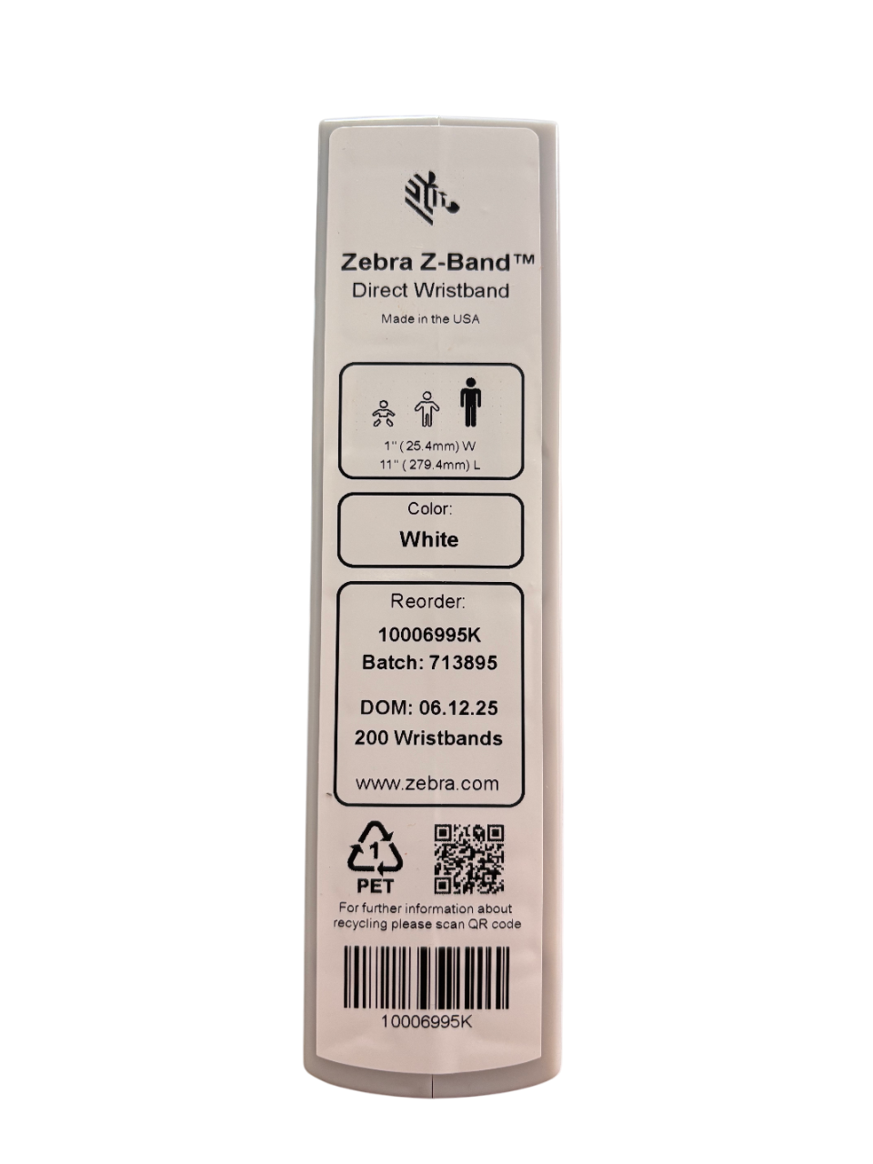 CARTUCHO DE PULSEIRAS ZEBRA Z-BAND DIRECT - BRANCA